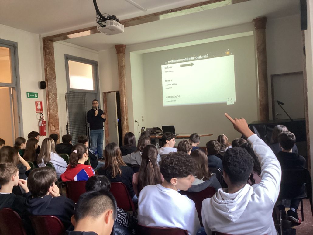 Il percorso è proseguito il 28 febbraio, con un incontro presso l’Aula Magna della scuola con il professor Michele Moresco, docente del Dipartimento di Fisica e Astronomia dell’Università di Bologna. Durante l’intervento, gli studenti hanno esplorato temi come l’espansione dell’universo, la relazione spazio-tempo, l’evoluzione delle stelle e i buchi neri.
